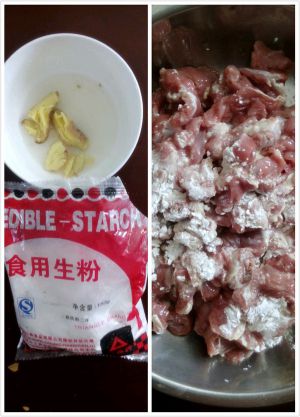 牛肉切丝,入生抽、油、生粉抓匀待用