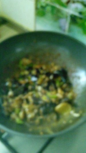 放入茄子,翻炒两下,放入少许耗油。然后放入蒜沫,继续炒,炒出蒜香。最后放少许淀粉,中火收汁即可。