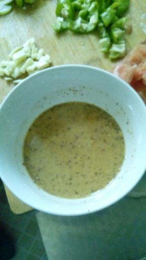 取一空碗,取适量香醋,生抽,盐,鸡精加入碗中调好酱汁(根据食材的分量)