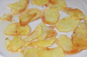 要把土豆片煎成这样。注意用中小火煎,随时注意,以免煎糊。