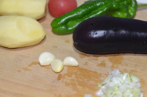 茄子切条,蒜切丁,姜切片,肉切片辣椒看个人喜好切碎还是切条都行