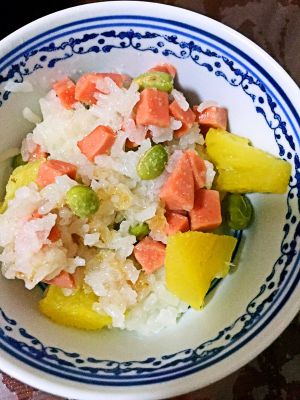 先下锅炒辅料,然后加入米饭翻炒,之后放加少许海鲜酱油,适量咖喱粉,根据口味加盐继续翻炒即可