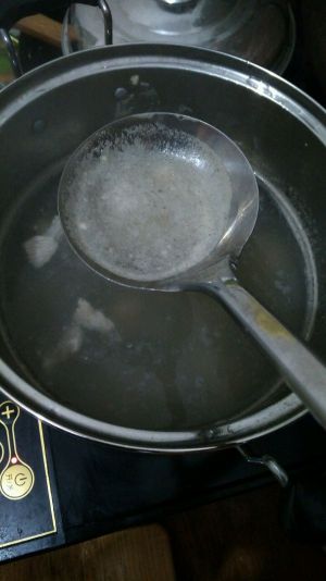 把排骨洗好,过一下水,去掉血水,口感好点。加少许盐,不要忘记加生姜哦,大火煮开,小火炖着20分钟