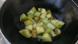 放入茄子炒软~ 别着急慢慢炒 炒好后捞出备用