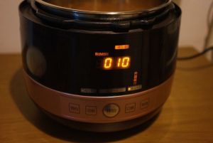 将美的电压力锅选择煲汤模式、口感选择适中,点击开始