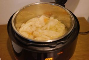 放入胡萝卜、香菇、西兰花小火慢炖。(我选择用电饭煲,功能选择肉类)