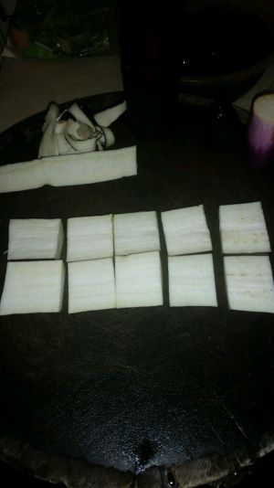 生粉面粉1比3,打入一个鸡蛋,再加入一定量水混合均匀,不要太稠也不要太稀,讲切好的茄子用这个混合均匀