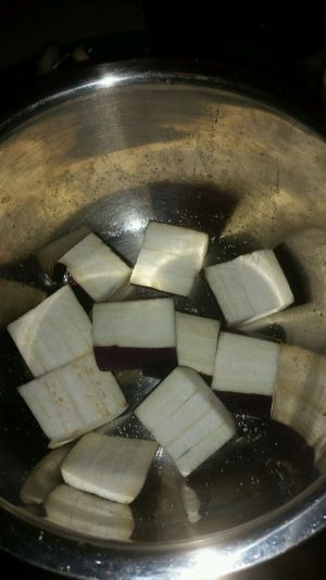 用盐稍腌渍一会,用水冲净茄子的涩味。