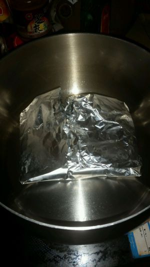 用锡箔包好放入特百惠至尊精钢锅内。300w8分钟。