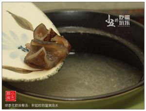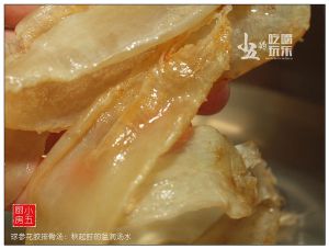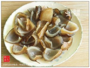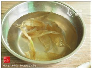 小花胶用清水冲洗,清水泡发至花胶变软。