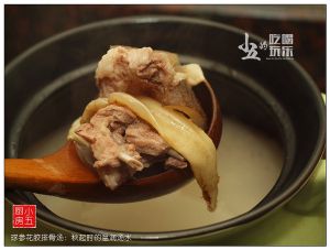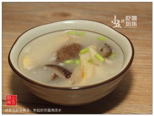 加入白蘑菇炖20分钟,最后放盐、胡椒粉调味即可。