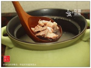 坐锅烧水,放入排骨,姜,煮沸转文火炖一小时左右。加盐装碗即可。