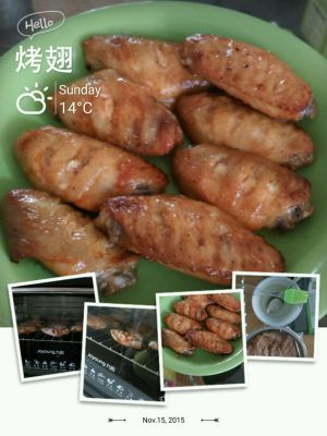 ☞烤箱200℃,把鸡翅码在烤盘上两面刷上蜂蜜水放入烤15分钟,拿出来翻面刷上蜂蜜水烤15分钟,翻面刷蜂蜜水烤10分钟,再翻面刷蜂蜜水烤10分钟(时间是2个15分钟、2个10分钟,每次翻面必须刷蜂蜜水) ☞微波炉中高火,步骤一样(时间是2个10分钟、2个7分钟) ☞各家的烤箱和微波炉都不一样,我给的时间可以参考,还得依据自家的电器调整时间
