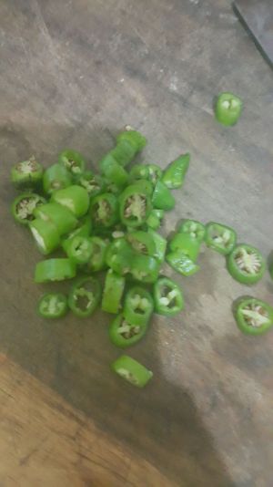 后补了绿色的杭椒。其实黄瓜也可以,不过家里没有了