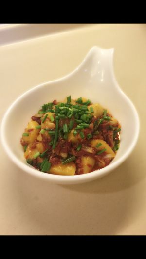 锅油热下入姜蒜片炒香下入豆瓣炒10秒左右下入牛肉翻炒一会倒入开水或高汤烧开,尝尝牛肉是否熟了,这时倒入己煮至九层熟的土豆下锅一起盖盖焖至七八分钟,如锅中汤汁多的开大火收汁,不需要太干,起锅前尝尝土豆牛肉味道是否合适,加几滴香油,葱花起锅即可,土豆牛肉既要软糯而又不会烂掉,这样口感才更好