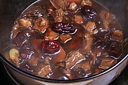 加入老抽调色、并放入大枣大火收汁。