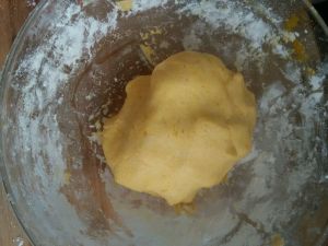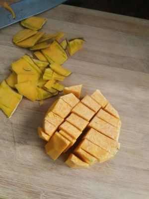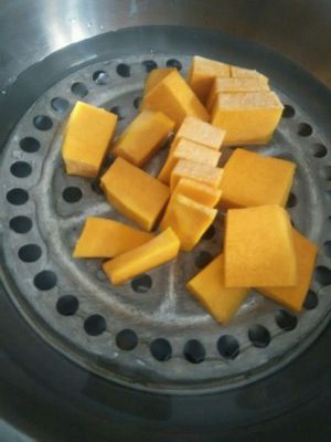 蒸熟的南瓜捣碎,和糯米粉混合,揉成面团,做好面矶子。