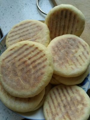 这是将之前做南瓜蔓越莓花卷的剩余两个面团用来做南瓜饼,将每个面团揉搓成条状切十等份,杆成面饼;