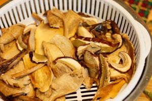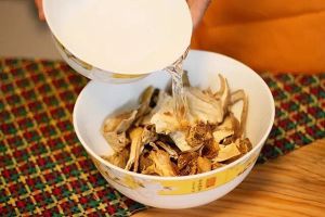 然后沥干水分(不要用手把菌菇的水分挤干);