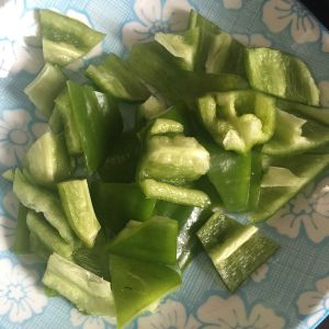 青红椒切小块,待用。