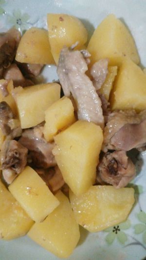 忘了马上拍照,被灭掉不大半了!土豆干干的~吸收了鸡汁的味道,淡淡的盐焗鸡香味,土豆原来的香味又不会被盖住!好吃~鸡肉嫩滑~美味~