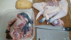 把鸡腿肉和鸡翅膀砍成小件!爱吃鸡肝的也可以放下去,好吃的!
