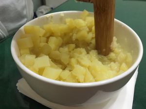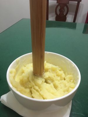 将蒸好的土豆取出放凉,放置室内风干约2小时再捣成泥。