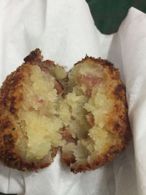 最后只需炸或煎成金黄色就可以了。土豆泥和里面的料都是熟的了,也不需要炸太久,只需将外皮炸至酥脆就可以了,这样才会很好吃~