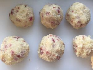 称重60克一个(可做12个),搓圆,手掌压扁。