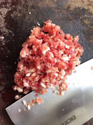 剁碎,如果想弄肉末也好,在锅里翻炒下加点洋葱,超级香。但是,我没洋葱也没肉末,所以就省了