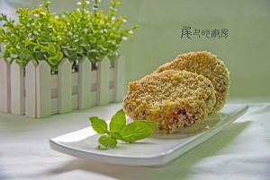 将搓好的薯泥球压成平时看见的可乐饼的大小圆形椭圆形都行,厚度为1cm左右即可~外面满满实实裹上面包糠。一个个放在烤架上码好。裹面包糠的同时烤箱开启200°上下层预热8min(因为我家烤箱貌似烤东西总是要很久才烤出效果)