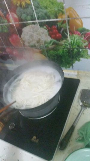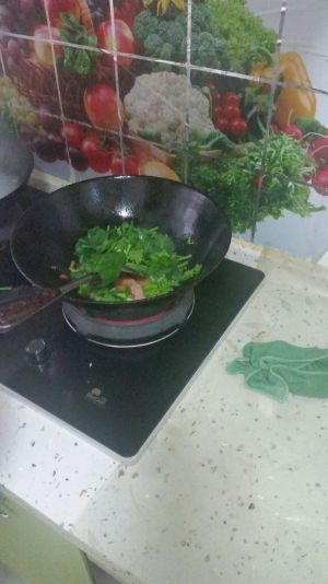 紧接着下飞水后的面筋丝、藕丝,下入调味料
