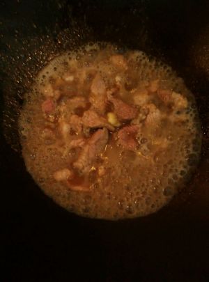 肉放到一边放入葱花蒜末姜丝煸炒一下出香味。