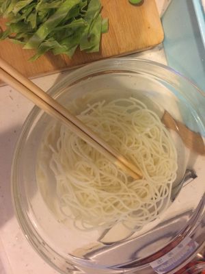 锅里烧开水煮面条,煮好的面条多过几遍凉水,然后放在盘子中备用