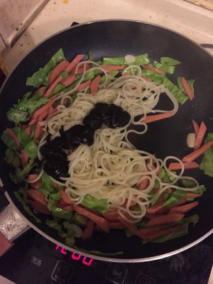 由于宝贝睡觉,所以屋子里只能熄灯,闪光灯照出的效果不是特别好,但味道很赞,老公说绝不输给外面那些放各种调料的炒面的,还让我去干个第二职业去