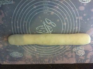 然后用刀切成3厘米宽度的馒头坯,最后醒发20分钟。