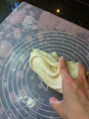 水加酵母加面粉揉成团,再加入盐、糖、油揉至三光。