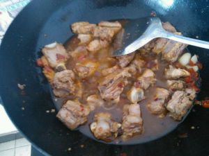 锅内下油,放入葱姜蒜所有辅料 炒香以后放入排骨,加入酱油 翻炒至颜色均匀即可