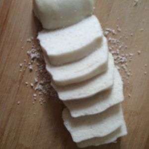 将搓好的长条去掉两头后,切成等份的小剂子。