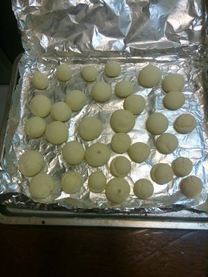 和成稍软的面团,开始搓小丸子喽!