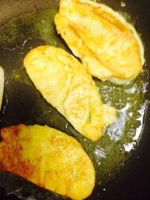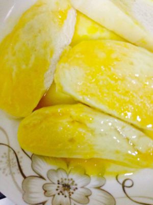 油温七八成热的时候(起泡时可用筷子试一下),将一片片馒头均匀裹上鸡蛋,放进锅里煎金黄即可(记得翻面噢)!