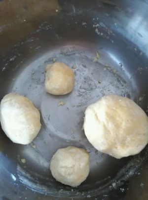 面粉买过来请面粉店的老板加的酵母,老板帮忙搅拌均匀了,回家用温水兑好红糖加到面粉进行揉面,要把红枣碎也加进去。揉成面团,放着醒面,这个要90分钟。。。第一次做没经验,装面团的盆子太小了,90分钟以后来看面已经醒好,已经要满出盆子