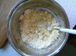 准备好各种材料,打散蛋黄后把所有材料混合在一起捏成面团。不用多揉,免得影响口感。
