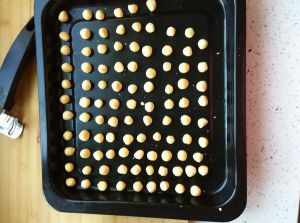 把面团揉成黄豆大小的一个个小球球入烤箱。