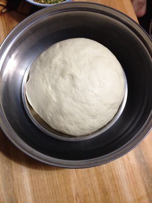 揉成光滑的面团,盖上盖子或保鲜膜,发酵40~50分钟。案板加入薄粉,揉5分钟左右排气。