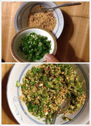 发酵期间 将切好的葱花 花生碎 适量盐拌匀 备用