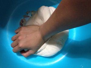 取出排气 面团要反复的揉压 10分钟 这样蒸出来的馒头才会口感筋到 表面光滑