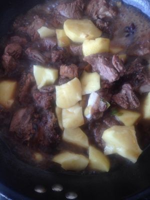 煮至15分钟左右加入切好的土豆块、此时如果汤少了可以再加入热水适量