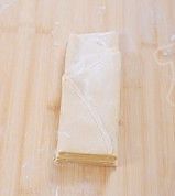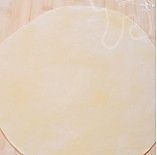 饧好的面团取出直接分成三份(因为面板不够大擀不开),取一份按扁,擀成厚约2mm的面皮。其余继续放袋中保存,避免风干。