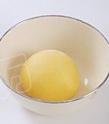 南瓜去皮去瓤蒸熟后打成泥,取200g,加盐,加入380g面粉揉成很硬的面团,要彻底揉匀。盖保鲜膜或者放袋中饧30分钟。中间可以再揉一次。
